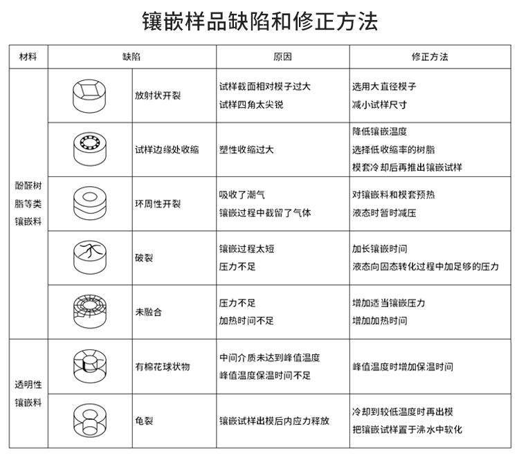 金相熱鑲嵌料又稱(chēng)金相鑲嵌粉,本品適用于各種不同類(lèi)型的鑲嵌機(jī)做試樣鑲嵌,以便于測(cè)試微小工件的硬度和觀察金相組織。鑲嵌粉經(jīng)鑲嵌機(jī)制樣鑲嵌工作8-15分鐘,保溫140-160℃,鑲嵌壓力:30±3MPa即可完成制樣。