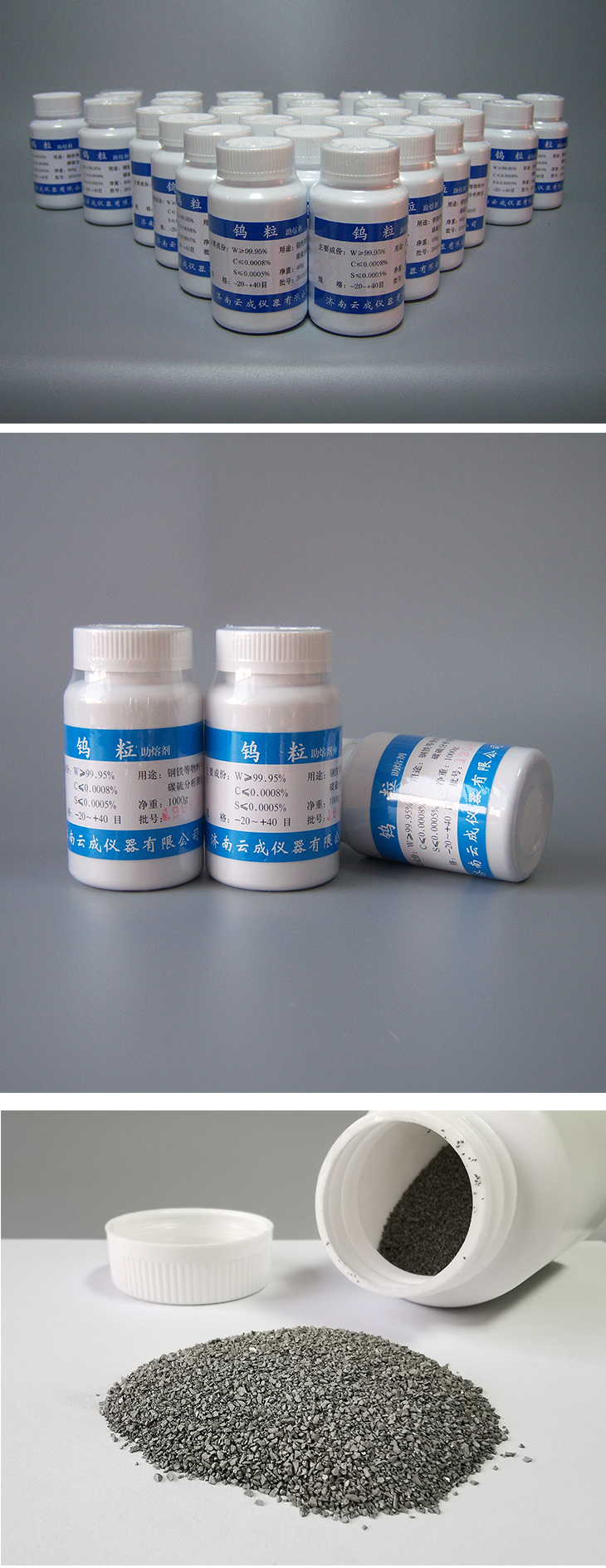 用于紅外碳硫分析中高頻爐燃燒時的助熔劑,對鋼鐵、合金等金屬及非金屬材料中碳硫分析測定,有助于降低燃燒物的熔點,促進碳硫的釋放。鎢粒的純度很高,CS空白值很低,具有良好的助熔效果,分析結果非常穩(wěn)定。