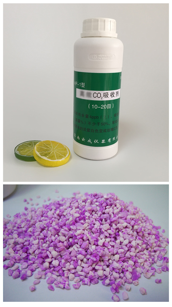 吸收殘余量4ppb(v/v),吸收容量(重量)不少于百分之50,吸收CO2后由原來的淡紫白色變成玫瑰紅色。