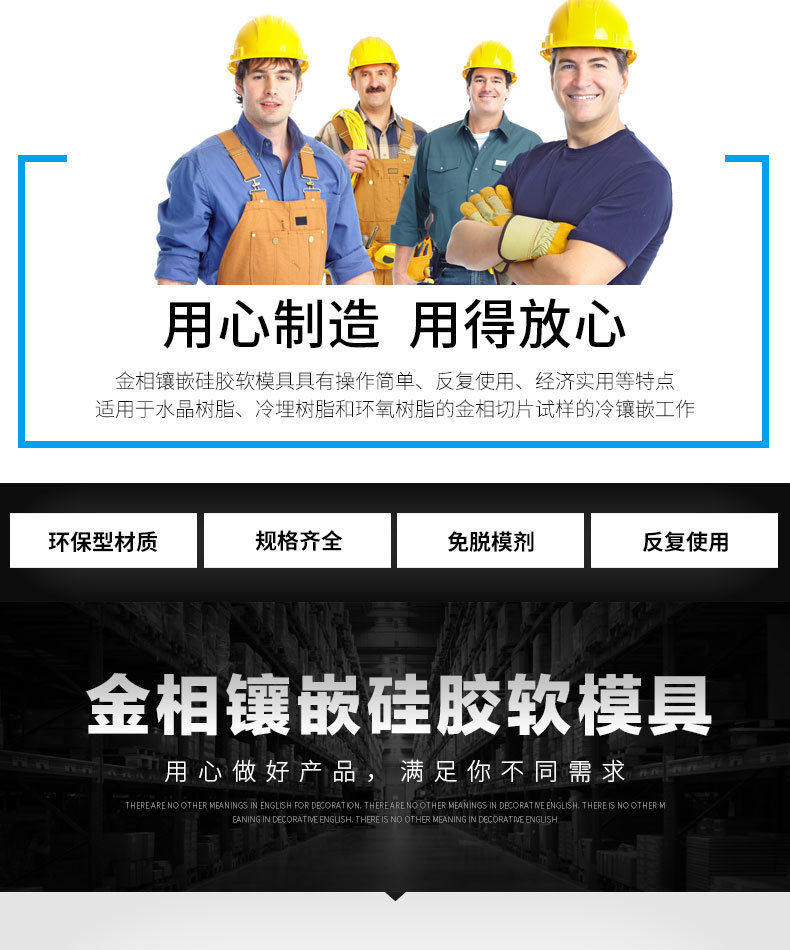 金相鑲嵌硅膠軟模具模具具有操作簡單、反復使用、經(jīng)濟實用等特點。適用于水晶樹脂、冷埋樹脂和環(huán)氧樹脂的金相切片試樣的冷鑲埋。